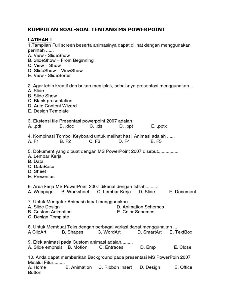 Pin on bank soal lembar kerja pada microsoft powerpoint biasa disebut sebagai a.